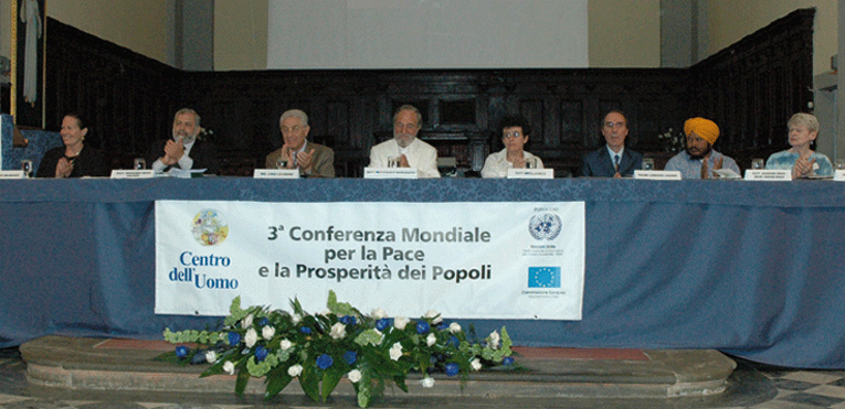 Pier Franco Marcenaro, in the center, presides the "Third World Conference for the Peace and Prosperity of the Nations"
