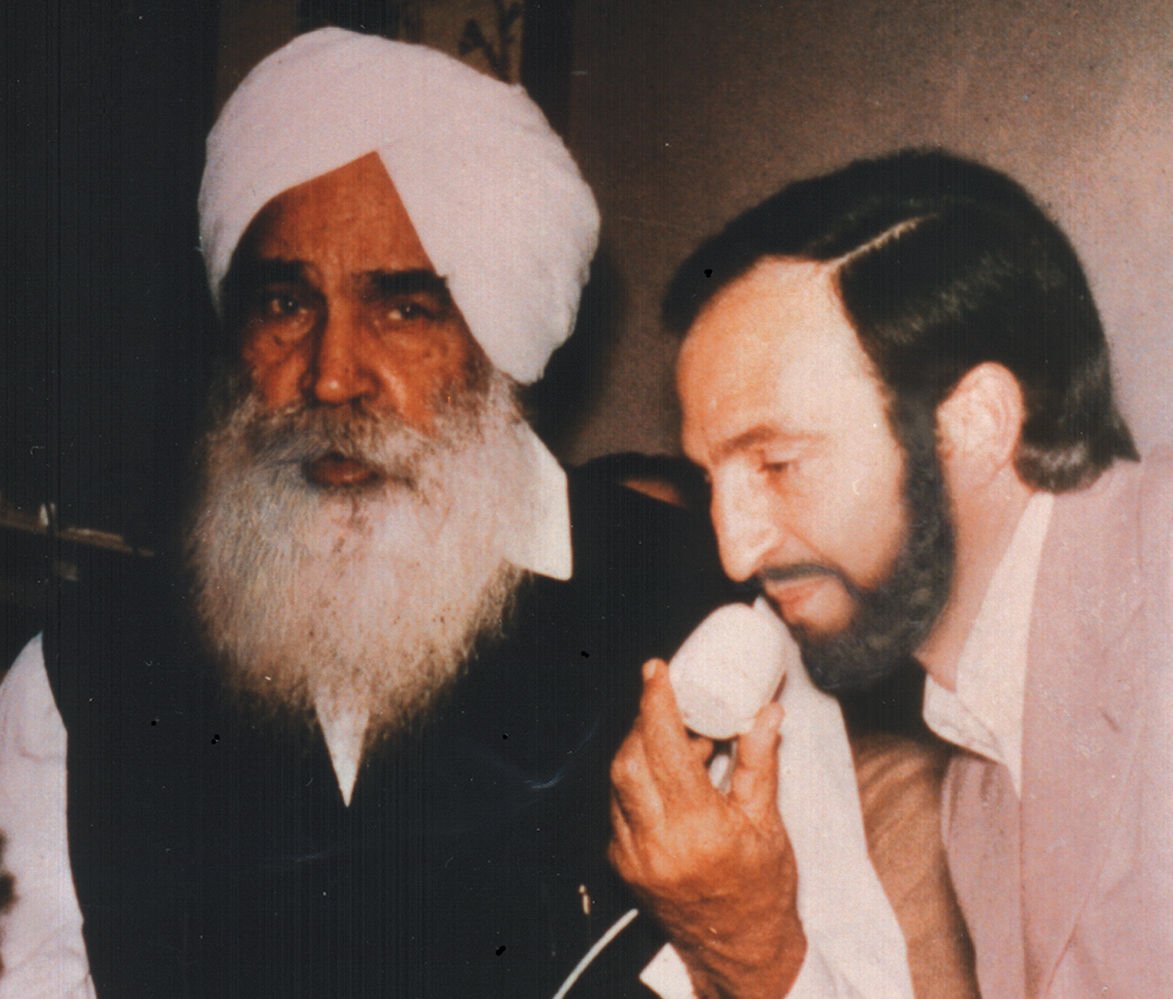Sant Kirpal Singh holds the microphone for his favorite disciple Pier Franco Marcenaro, who is speaking