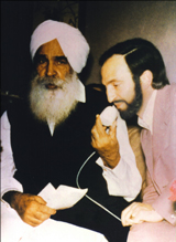 Sant Kirpal Singh holds the microphone for his favorite disciple Pier Franco Marcenaro, who is speaking